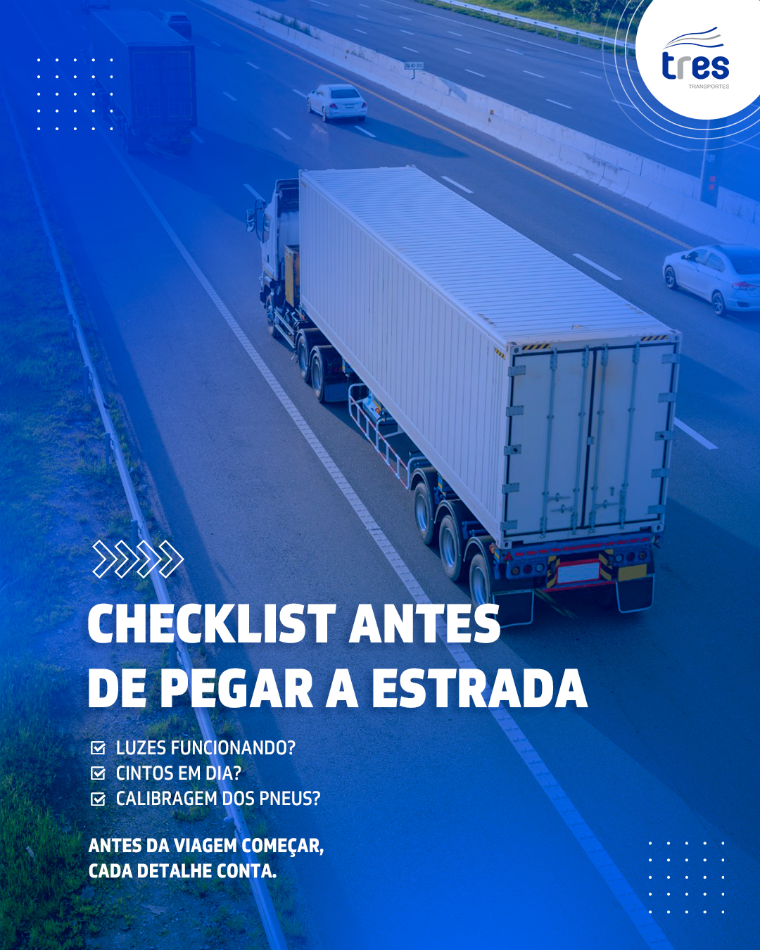 Na TRES Transportes, seguimos um protocolo rigoroso de verificação antes de cada viagem. Acreditamos que segurança não é um diferencial — é um compromisso.